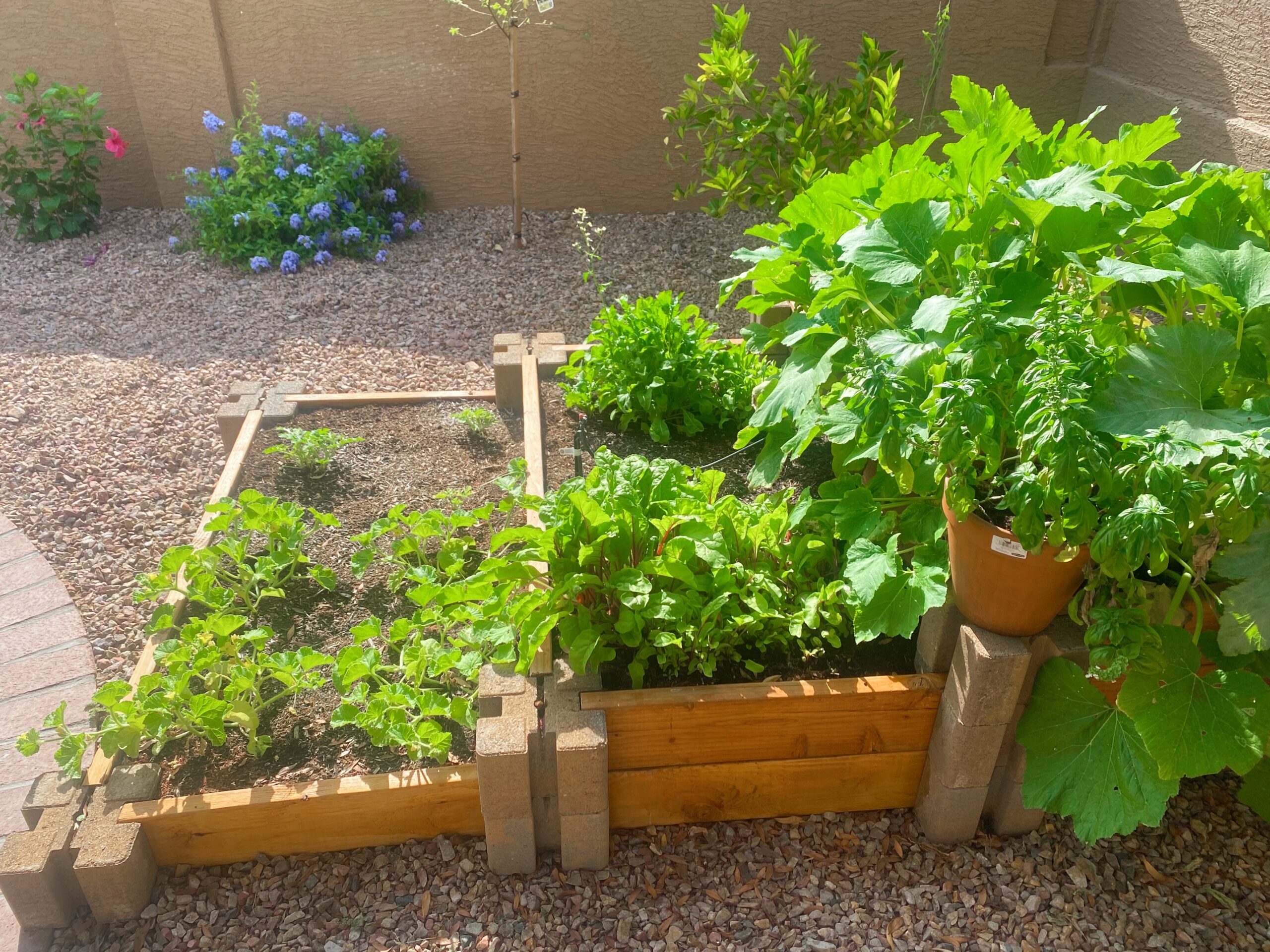 Garden update! When my eyes went wacky last year, I stopped gardening and basically let everything die. I was too scared to be out in the wild and soil a lot, and feeling pretty down about everything. This year, the Pilot planted everything for me (I think I’m allergic to something in the soil because whenever I plant, even if I wear gloves, I get a rash), and also installed irrigation to help with the Tucson sun. It’s THRIVING. Here’s what’s on the way: tomatoes, carrots, cucumber, watermelon, cantaloupe, chard, spinach, zucchini, and basil.
