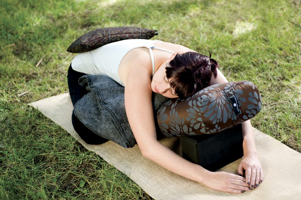 Restorative Yoga practice is highly adaptable and creative. Feel free to experiment with the props to suit your needs. Let us know what variations you’ve discovered.